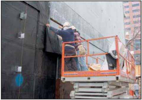 is applied over a solid substrate, (concrete, CMU, sheathing). Then